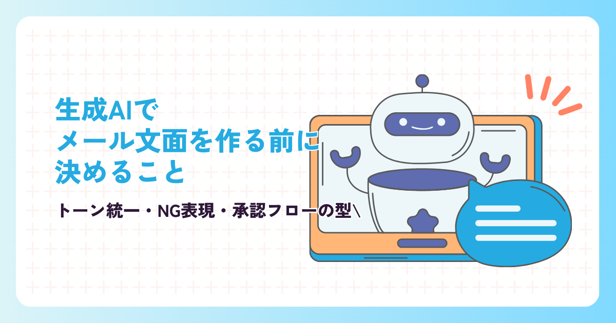 生成AIでメール文面を作る前に決めるべきことは、トーン統一、NG表現、承認フローです。おすすめの順番は次のとおりです。